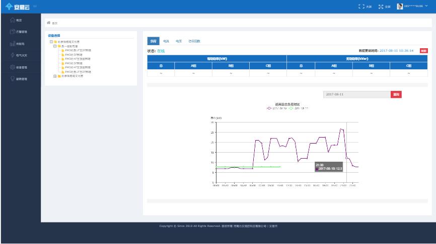 智慧式用电安全隐患监管服务系统具备用户权限管理的功能,相应的二级单位管理员只可查看自己所属单位安全用电实时数据。