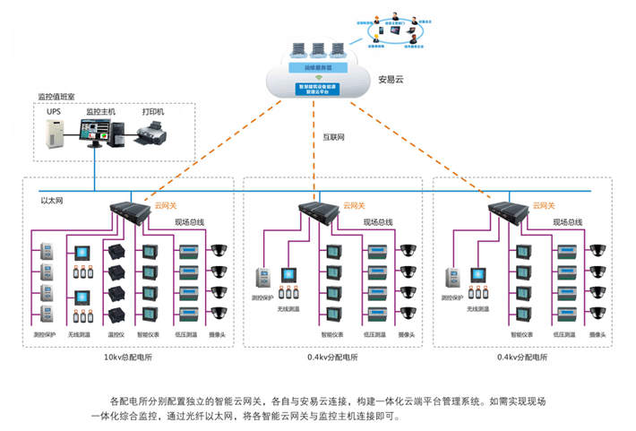 经智能云网关,将采集到的设备运行状态及参数、电能数据上传至安易云,并进行大量数据存储、计算和分析。设备业主、设备厂商、运维公司等,借助PC、手机等智能终端,可随时随地实现供配电设备及电能的监控管理,让供配电设备智能监控、节能管理、智能运维、服务咨询变得更高效,让供配电设备管理变得更简单!